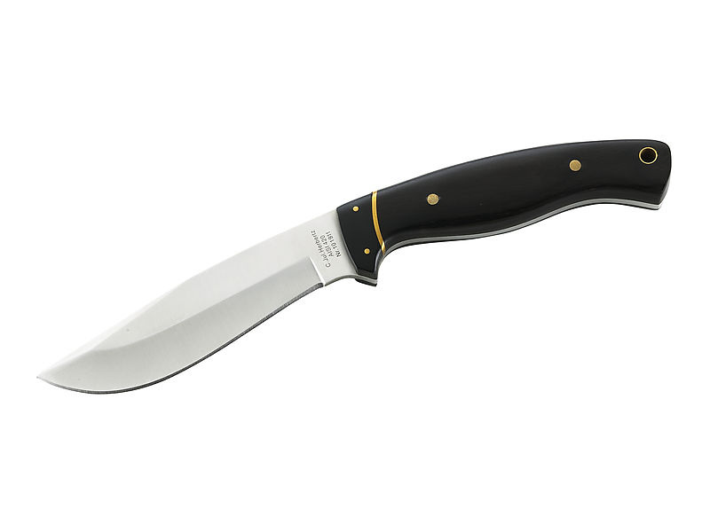 aus rostfreiem AISI 420 Stahl in Drop Point Form. Der handlich geformte