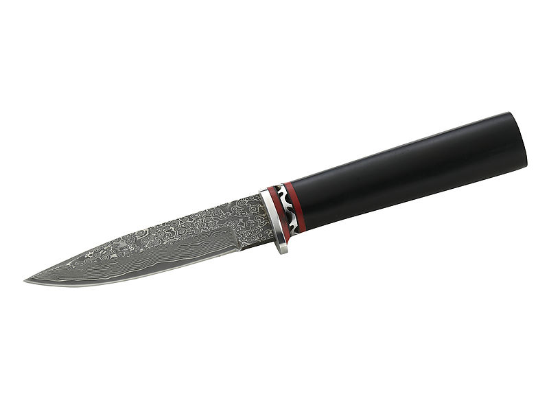 35-lagigen Damast pro Seite aufschmiedet. Als Griffmaterial wird