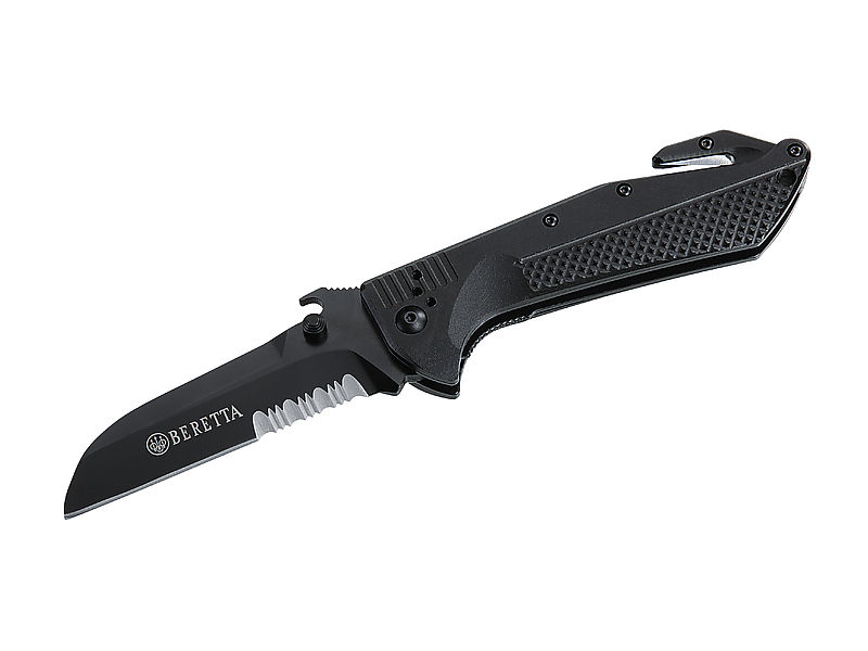 Art.-Nr. 263912Beretta Rettungsmesser, Stahl 440, PTFE-Beschichtung, Liner Lock, Gurtschneider, Schlagdorn, Edelstahlclip