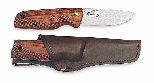 Bestellung@outdoorspezi.de ArtNr.: 249008 EKA Nordic H8 Klein aber fein ist das Jagdmesser Nordic H8. Die richtige Balance entsteht durch die breite Klinge aus 4mm Schwedenstahl aus Sandvik. Eine optimale Kraftausnutzung gewährleistet EKA dadurch, dass die Schneide fast bis an den Griff herangeht. Für die optimale Griffsicherheit sorgt die ergonomische Form der Griffschalen aus Bubinga sowie die Netzstruktur. Inkl. Scheide aus erlesenem Leder.