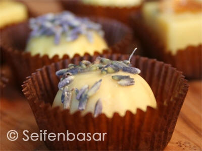 Kakaobutter, natürlicher Emulgator, Aprikosenkernöl, äth. Lavendelöl, äth.