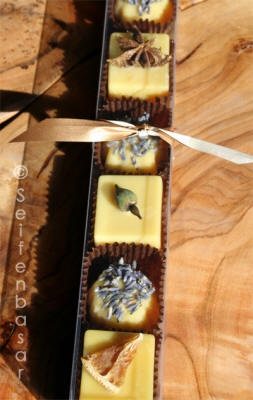 Kakaobutter, natürlicher Emulgator, äth. Orangenöl, äth. Patchouliöl,
